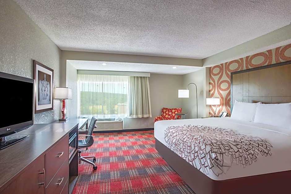 This room with 1 king bed has a seating area, cable TV and a microwave.